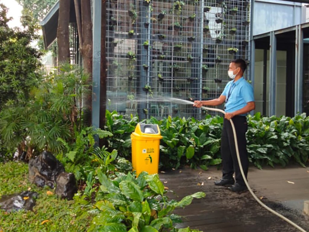 Daily & periodical cleaning dengan SOP, color-coding, dan QA rutin. Area selalu rapi, siap audit; tersedia opsi chemical ramah lingkungan sesuai kebijakan site.